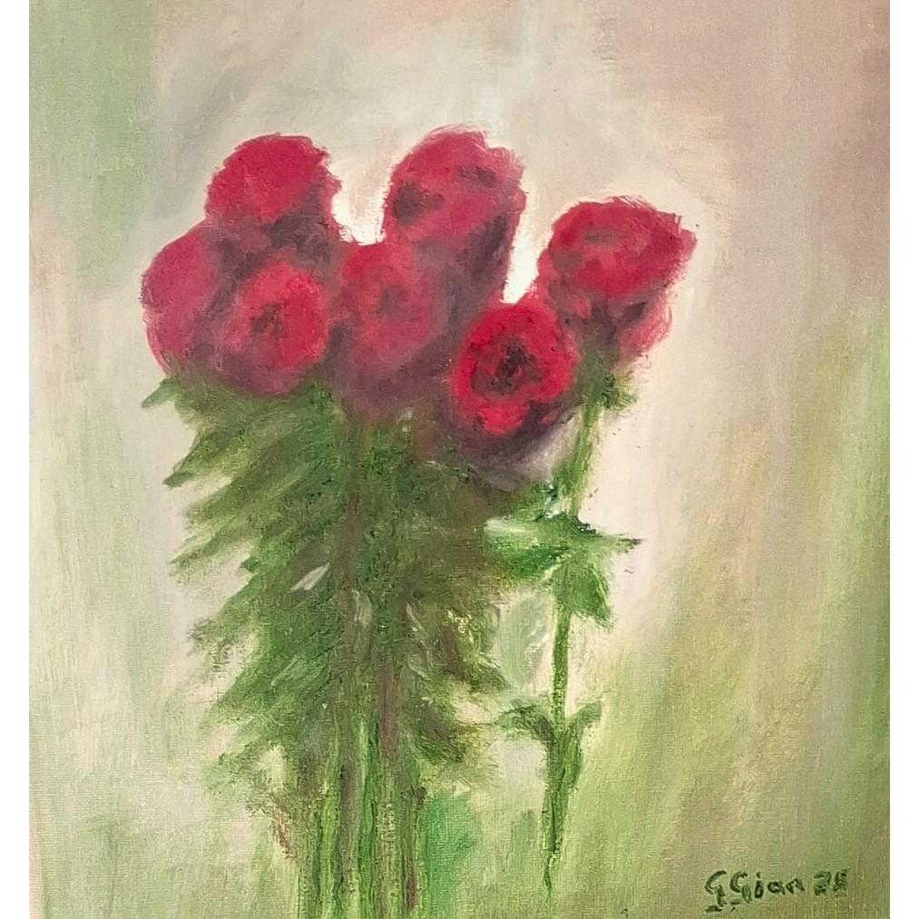 Rappresentazione impressionistica di un mazzo di rose rosse.